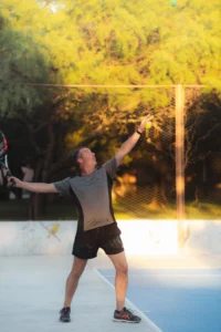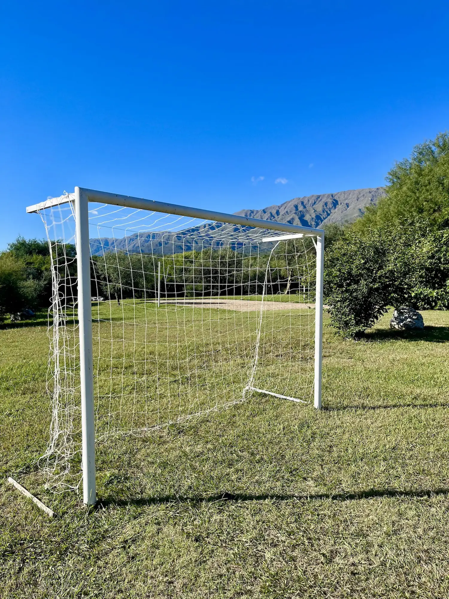 Nuestra cancha de tenis de cemento tipo TENISFAST R, está situada al este de la plantación de frutales y se encuentra totalmente cercada con alambrado olímpico de 5 mts de altura.